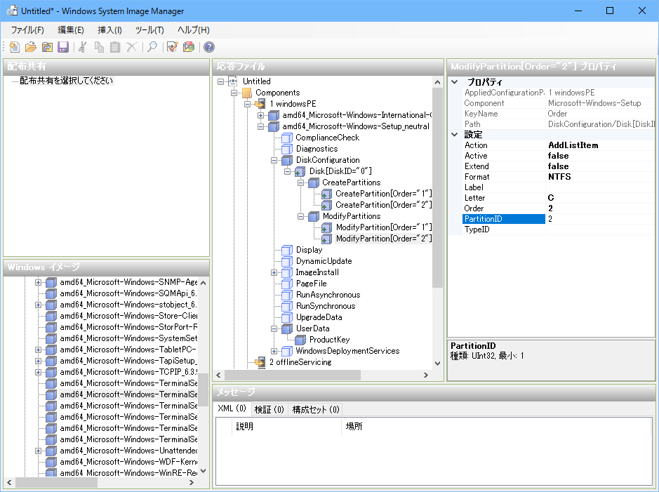 ツリー : \DiskConfiguration\Disk\CreatePartitions