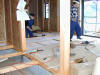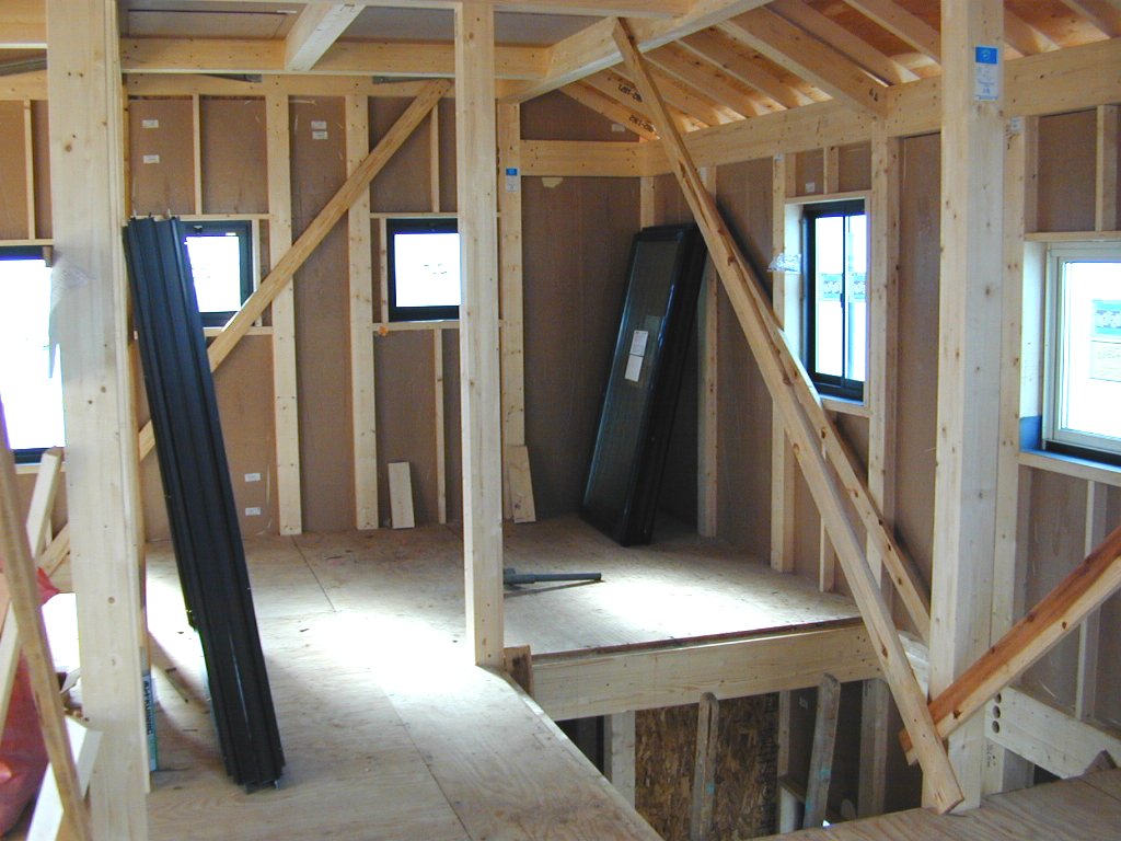 今日は久々にいい天気になりました。現地に行ってみるとすでにサッシが入っており、床の断熱材も張り始めています