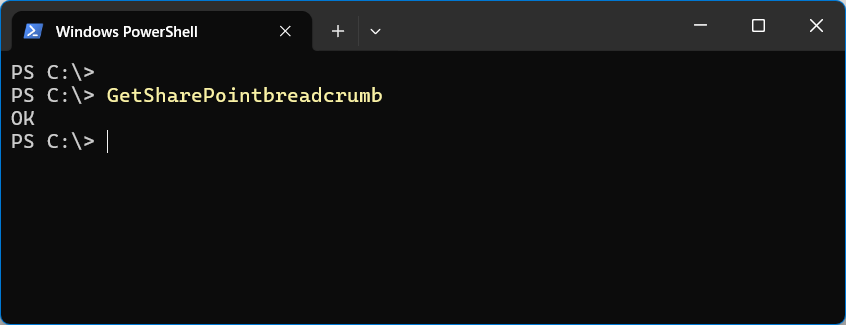 URL をクリップボートにコピー(Windows Edge / Chrome なら Ctrl+L → Ctrl+C)して、PowerShell プロンプトで GetSharePointbreadcrumb と入力すると、クリップボードにパンくずと URL がセットされます