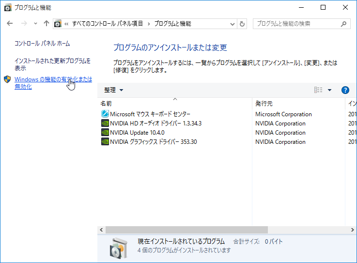Windowsの機能の有効化または無効化