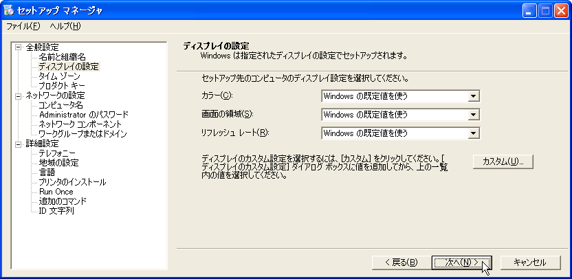 Windows XPの自動応答は、sysprepに対する応答ファイルとして作成するので、sysprepをかける前に作成しておく必要がある。