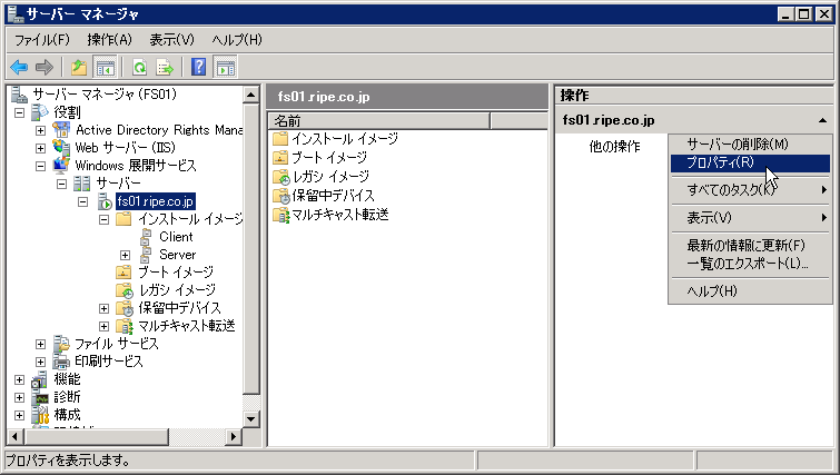 WDSサーバのプロパティを開く