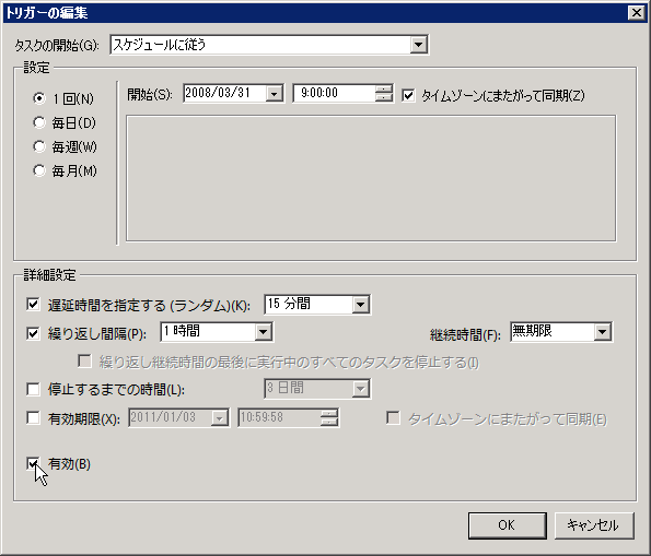 仕上げに、タスクスケジューラの Microsoft\Windows\RAC にある RacTask を編集します。