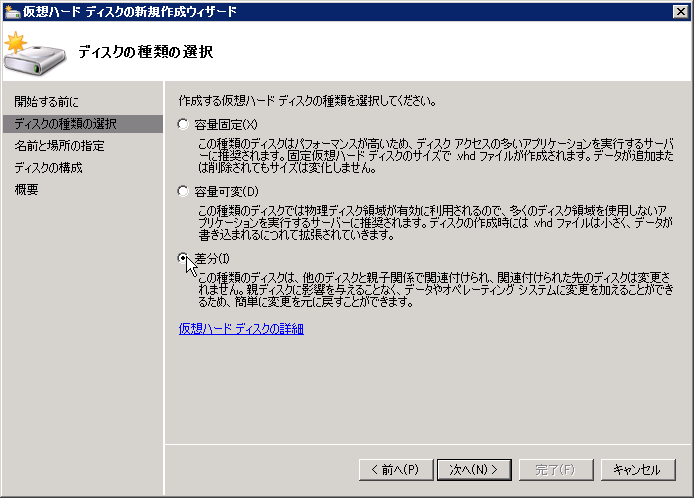 ベースとなる VHD が出来たら、これから必要数分の差分 VHD を作成します。