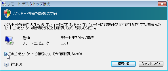 それでは、w7 からリモートデスクトップ接続を使って XP のデスクトップにアクセスしてみましょう。