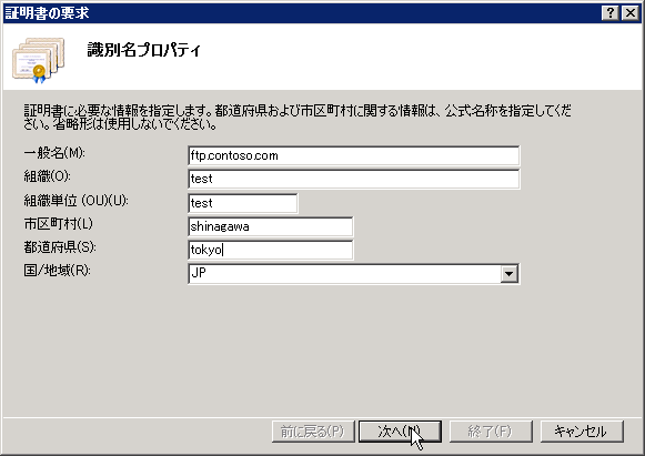 FTPs を使う場合は、物理サーバーの証明書を使用します。この解説では、アイソレーションコントロール(ログインユーザーの分離アクセス)には触れていませんので、アイソレーション コントロールについては、拙著の Windows Server 2008 本を見て頂くか、Helpか、インターネットで検索してください。