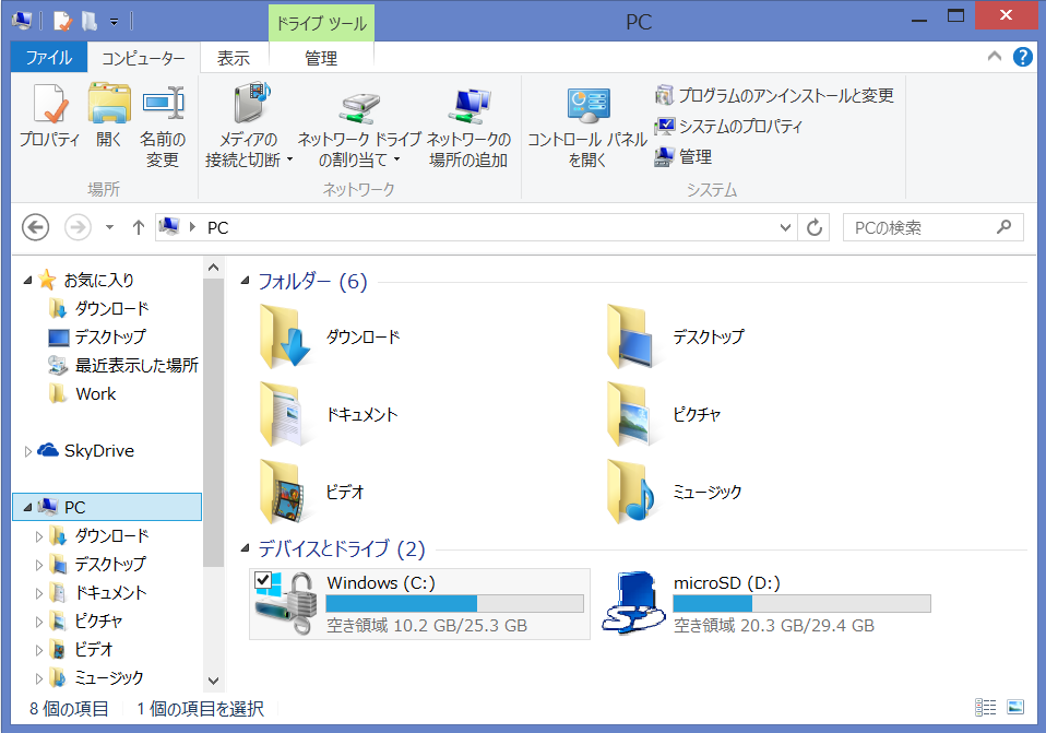UHS-I に対応していないと、うまく認識しないかもなのでドキドキだったのですが、Surface 2 は問題なく読み書きできました。FAT 系のファイルシステムだと破損が怖いので、NTFS で再フォーマット。